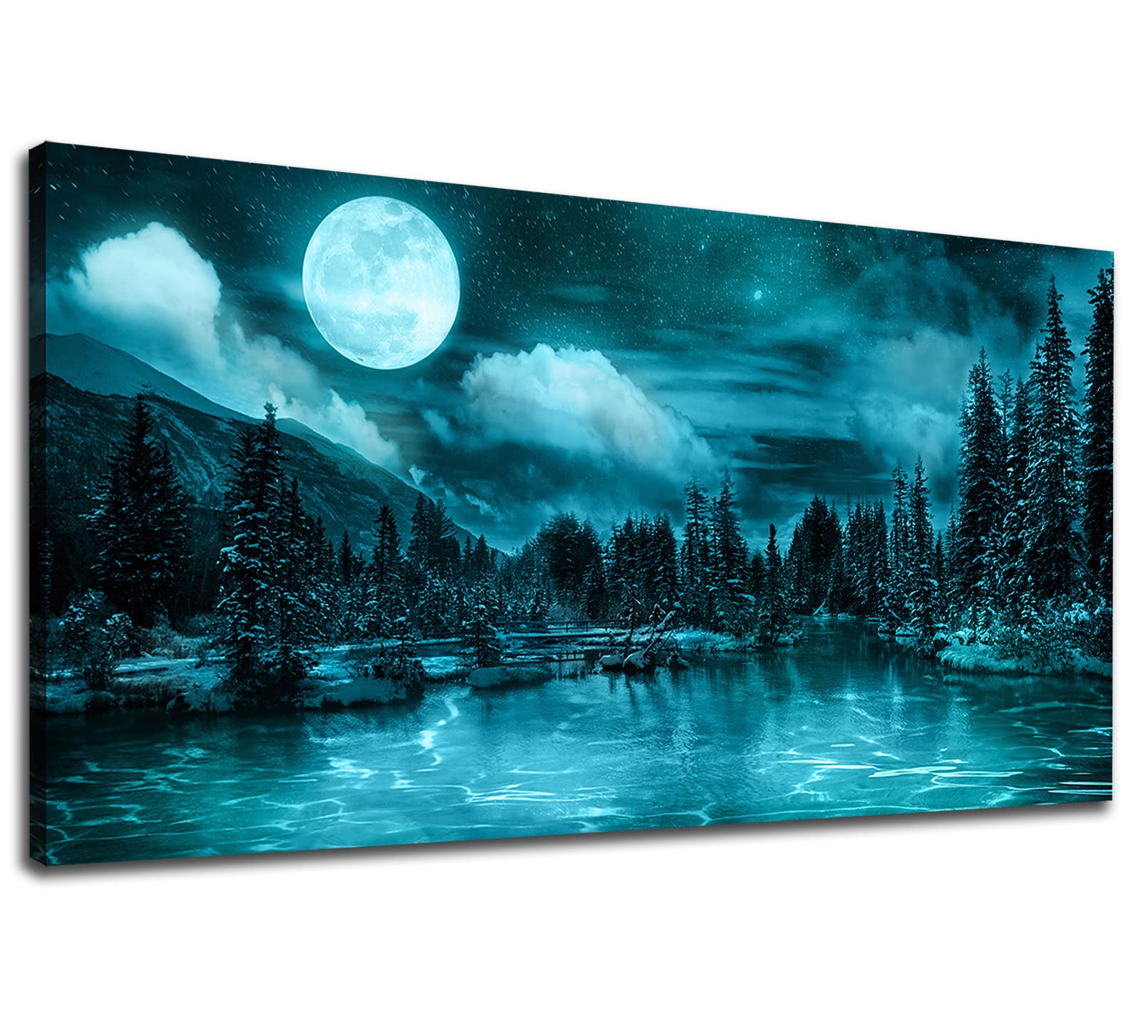 Amazon Com Moon Night Canvas Wall Art Forest Mountain Tree Wall Pictures Sky Starry Ocean Landscape Painting Snow Artwork Prints For Living Room Bedroom Kitchen Office Home Decor Framed Ready To Hang 20 X